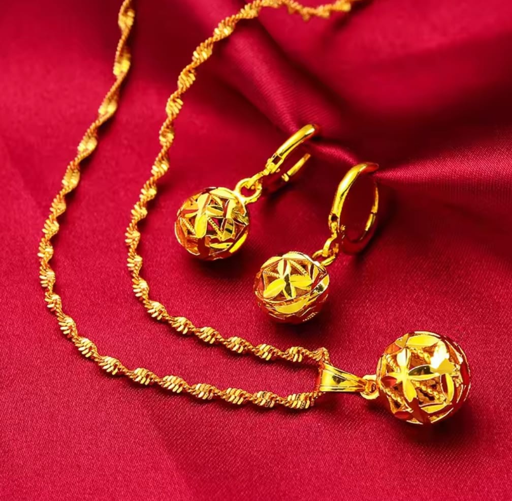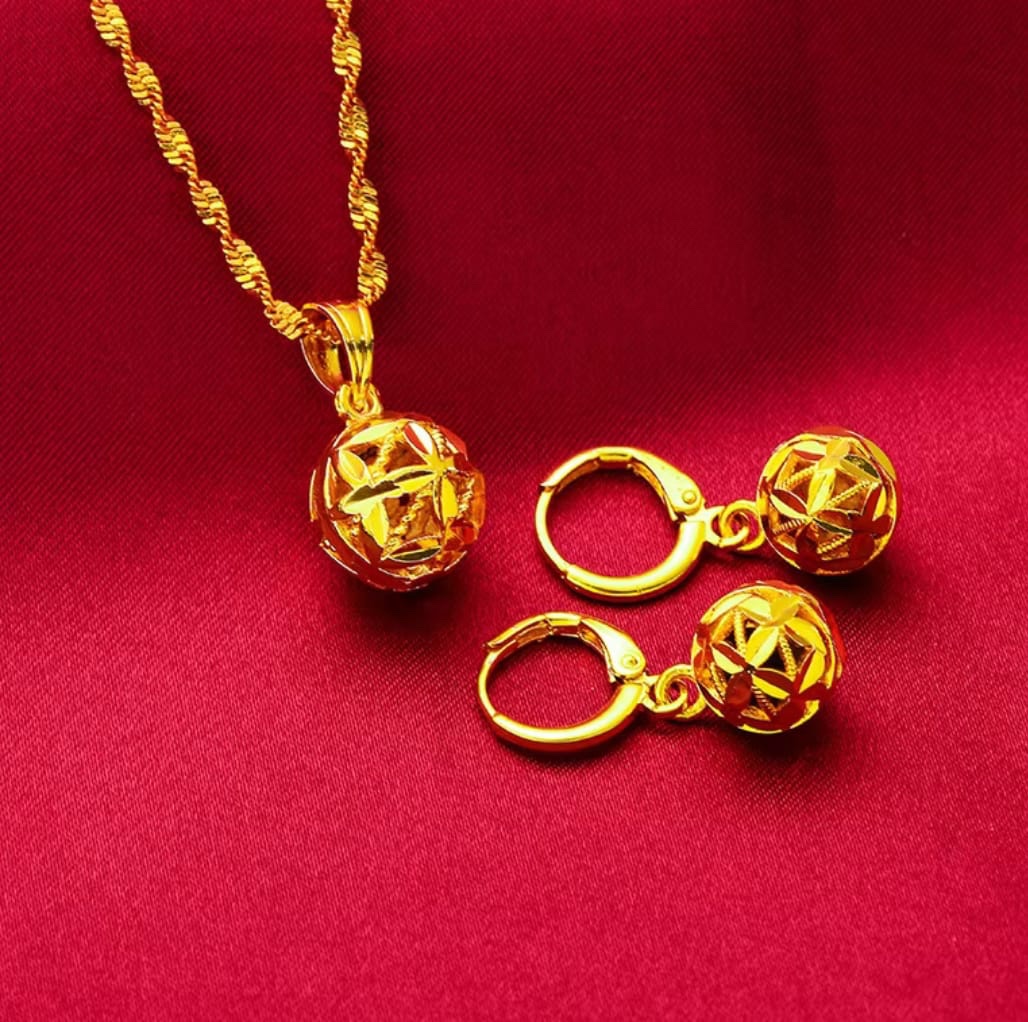 18k Gold filled Ball Earring and Necklace set18k Gold filled Ball Earring and Necklace set