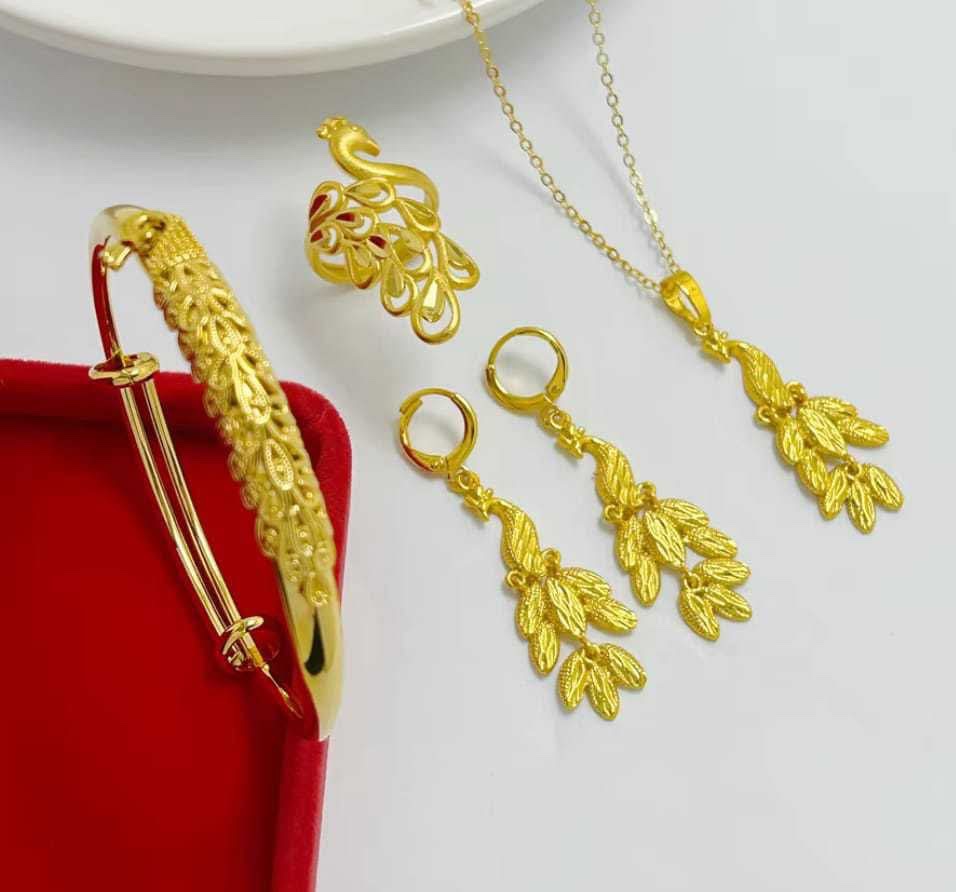 peacock necklace with earrings and bracelet bangle