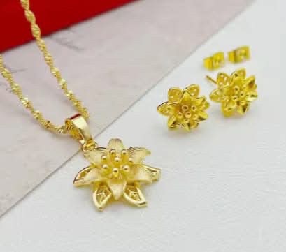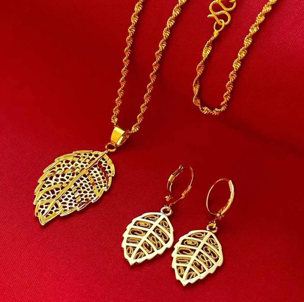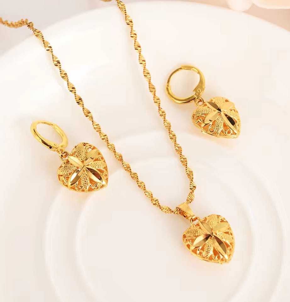 18k Saudi Gold Necklace huggie hoop Earrings