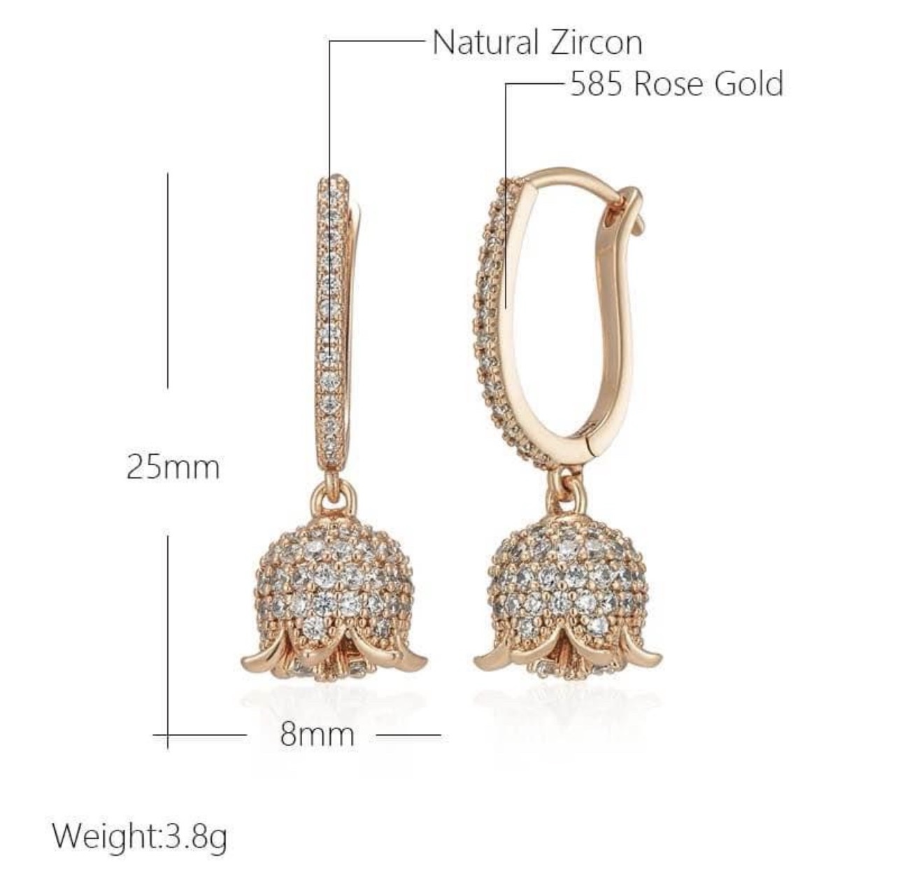 585 Stamp Rose Gold Drop Earrings